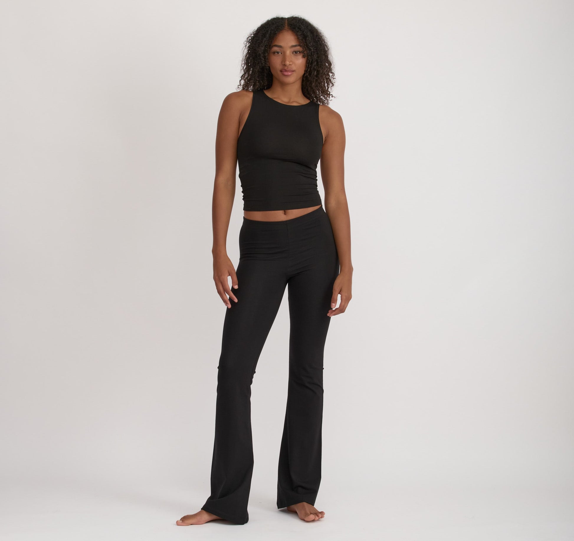 - High-waisted flared pant with a body-hugging fit.