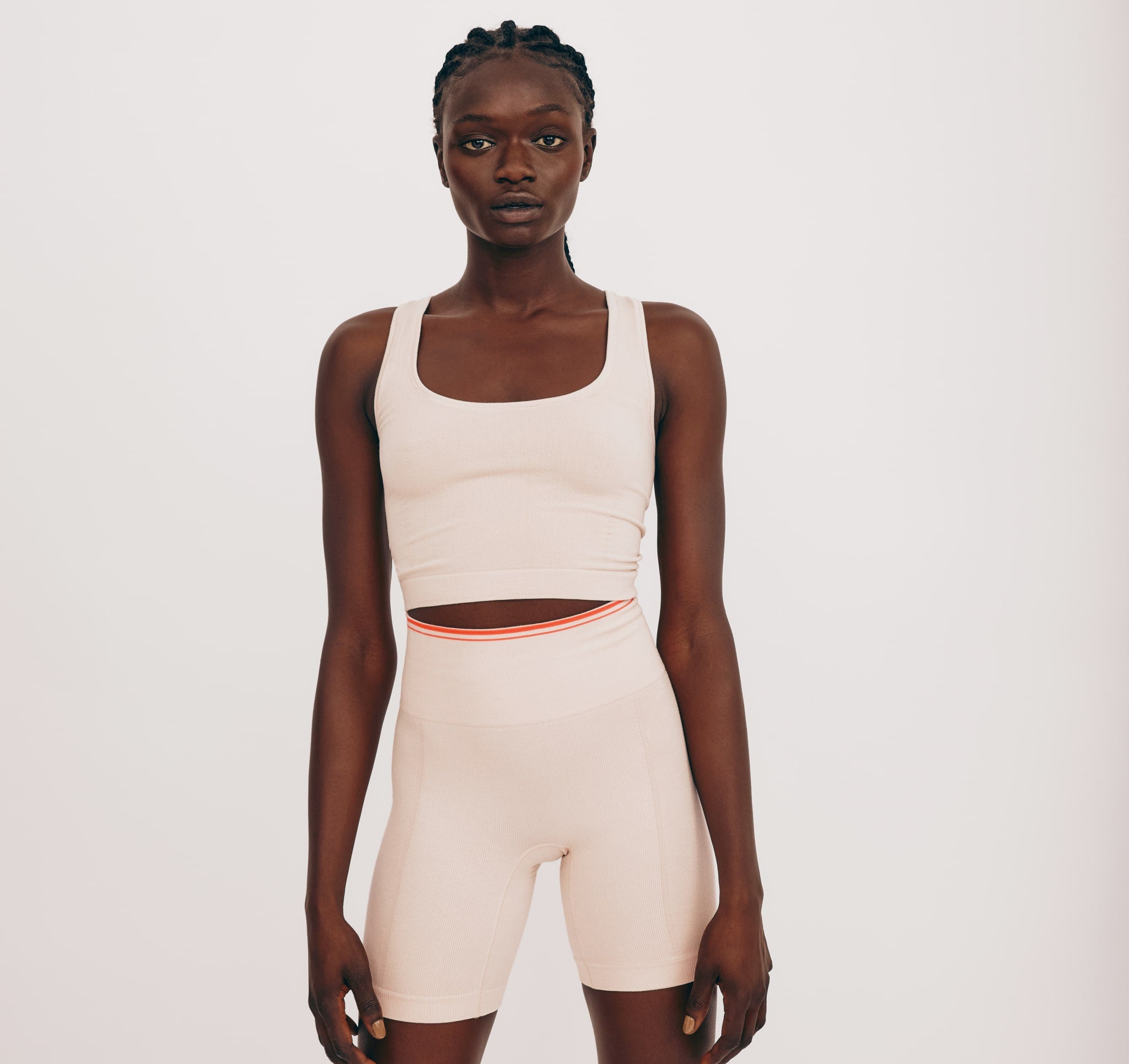 - Body-hugging cropped tank top