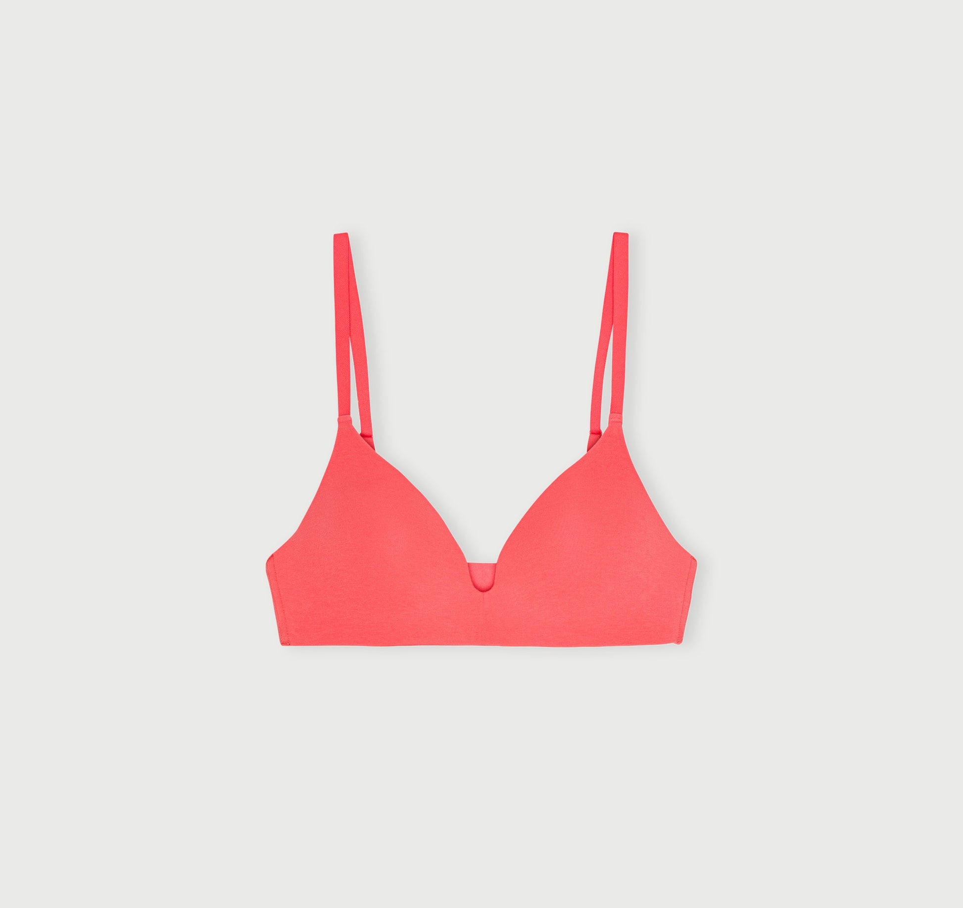 - Wireless padded bra with a plunge, triangle neckline that creates a small push-up effect.