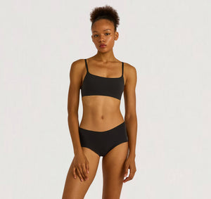 Using recycled materials can help reduce the impact of its production by conserving resources and diverting waste from landfills. Our recycled nylon is typically made with pre-consumer waste. Known for its durability, nylon can withstand frequent washing and wear without losing its shape. Body: 70% Recycled Nylon, 30% Elastane Cup: 100% Recycled Polyester (outer layer), 100% PU foam (removable inner layer) - We recommend using a GUPPYFRIEND Washing Bag, as all synthetic products release plastic microfibers into the environment during washing - Hand wash cold. - Use only non-chlorine bleach when needed. - Do not iron. - Do not dry clean.