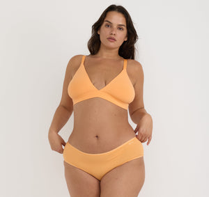 An ultra-flattering pair of briefs in a mid to high-rise cut made with 95% organic cotton. Made with high-cut legs and an embossed elastic logo waistband.