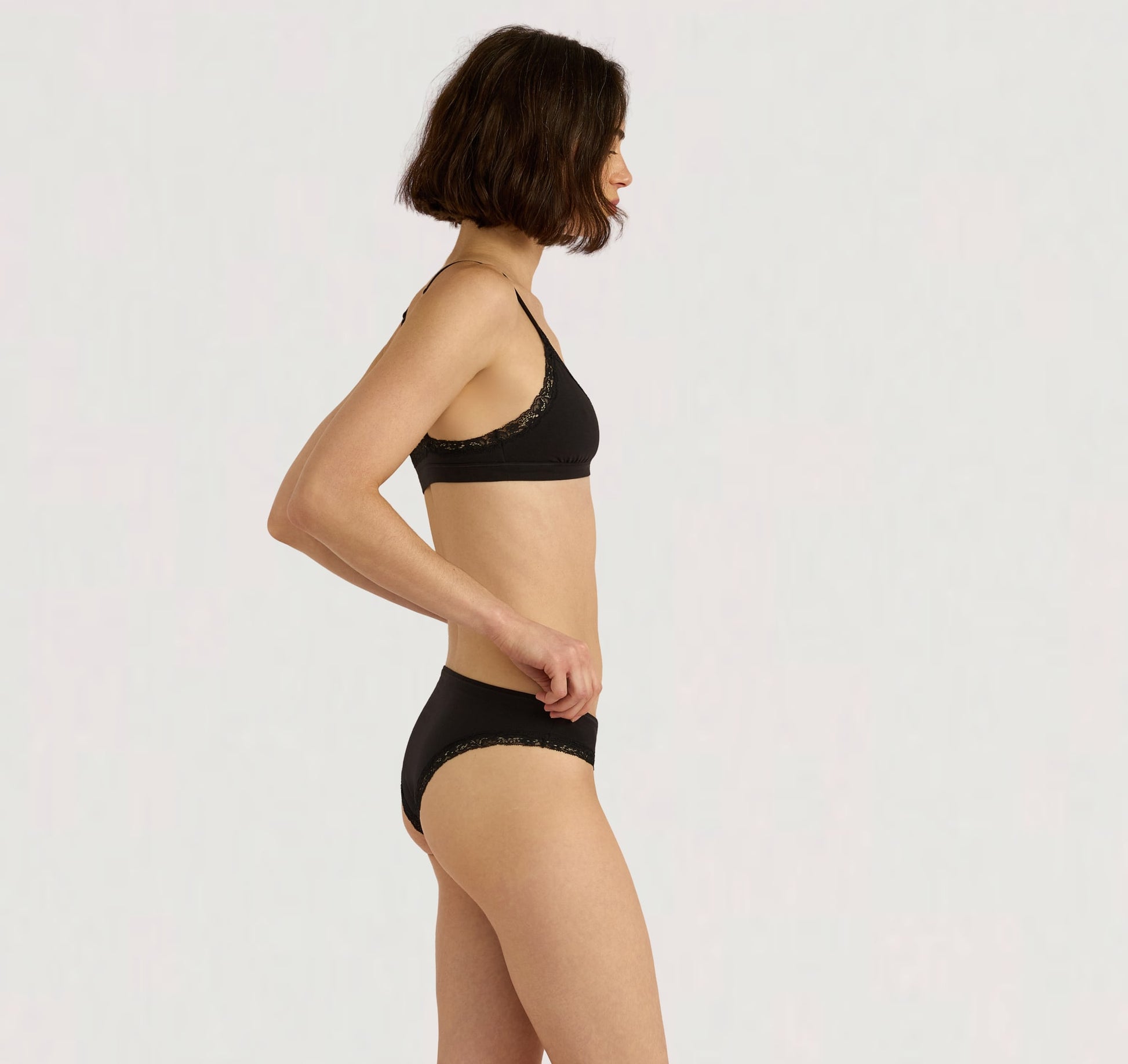 Cotton is a natural fiber that is commonly used for its breathability and softness. Using organic cotton instead of regular cotton has the potential to build soil health, as it is grown without the use of synthetic fertilizers. - Body: 90% Organic Cotton, 10% Elastane - Gusset: 100% Organic Cotton - Lace: 50% Recycled Polyamide, 39% Polyamide, 11% Elastane - Machine washable with similar colors. Maximum 40°C wash - We recommend the conscious choice of 30°C - Snug, body-hugging fit in a soft and stretchy material